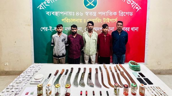 রায়েরবাজারে সেনাবাহিনীর বিশেষ অভিযান।গ্রেফতার ১৮, বিপুল দেশীয় অস্ত্র উদ্ধার